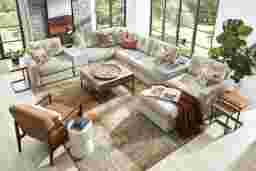 Discover the limitless possibilities of the Drew & Jonathan ModularOne, thoughtfully designed with comfort and flexibility in mind. This customizable seating solution features individual pieces that can be reconfigured to the shape you need. Game days, movie nights, sleepovers, and everyday relaxation are all better when the seating arrangement you want is always right at your fingertips.Each individual piece is upholstered on all sides in our signature fabric, New Horizon. This soft, beige chenille includes Repreve yarn, made with recycled plastic bottles. The open seating includes a chaise and has welted track arms, top-stitched seat cushions and button-tufted back cushions for an elegant silhouette. Two center consoles provide hidden storage and double as side tables with acrylic tops. A matching pillow provides the perfect final touch. Includes LAF chaise, two consoles, three armless chairs, ottoman, & RAF chair. Visit a showroom to learn more about individual components and to work with a sales specialist to customize your own configuration today.