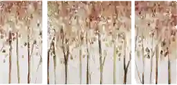 Create a serene atmosphere in your home with The Start of Fall palette knife embellished 3 piece canvas art set. A forest scene is displayed across each canvas of this 3 piece set for a calm transitional look. Palette knife embellishments made by hand add texture and dimension to the canvases, while two D-rings make it easy to mount them on your wall. The largest canvas measures 27x27 and the two identical side canvases measure 13.5x27. Ideal for any room, this 3 piece canvas wall art set offers a charming transitional touch to your home decor. Spot clean only.