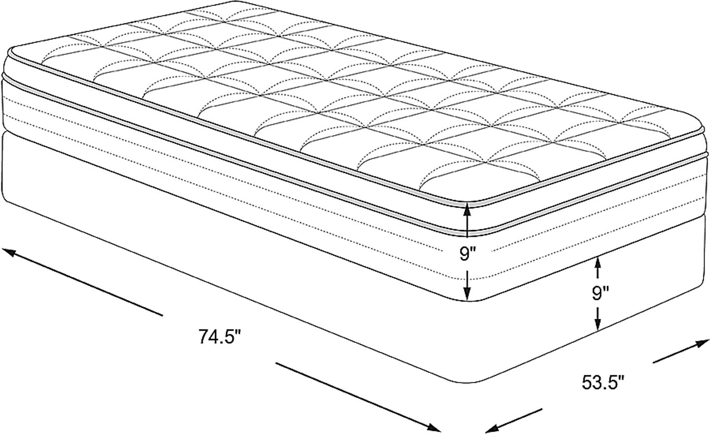 full mattress: 53.50"w x 74.50"d x 8.75"hfull foundation: 54.00"w x 75.00"d x 9.00"h