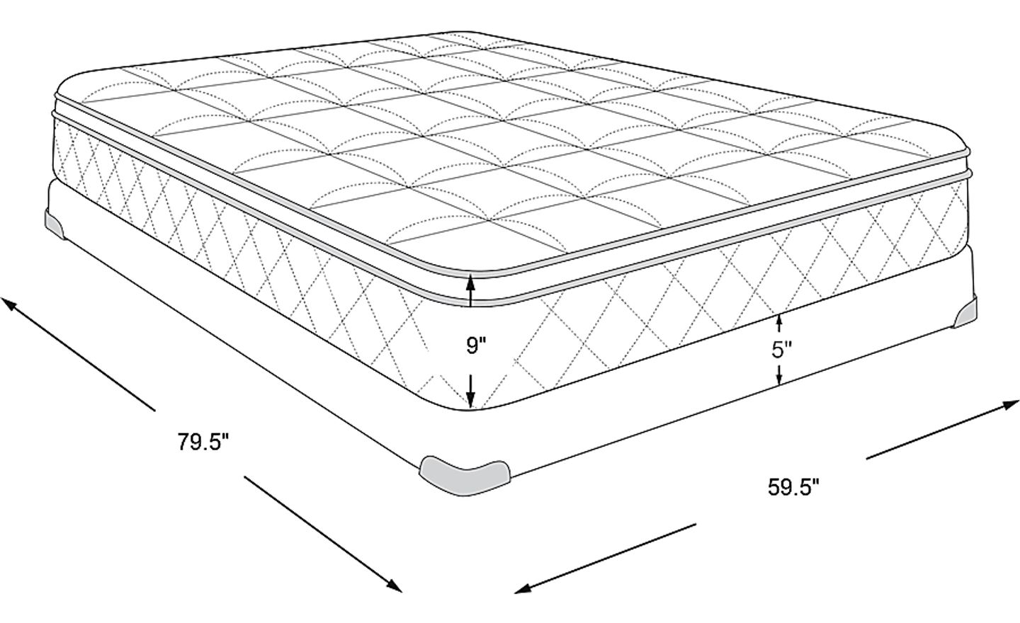 mattress: 79.5"l x 59.5"w x 9"h, foundation: 5"h