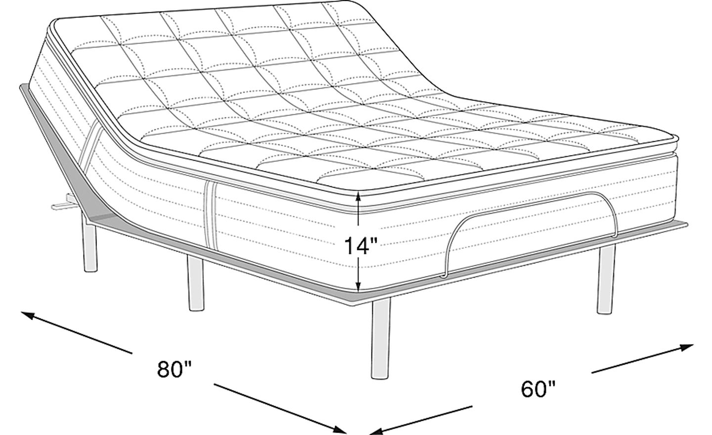 80"l x 60"w x 14"h; adjustable base: 4"h