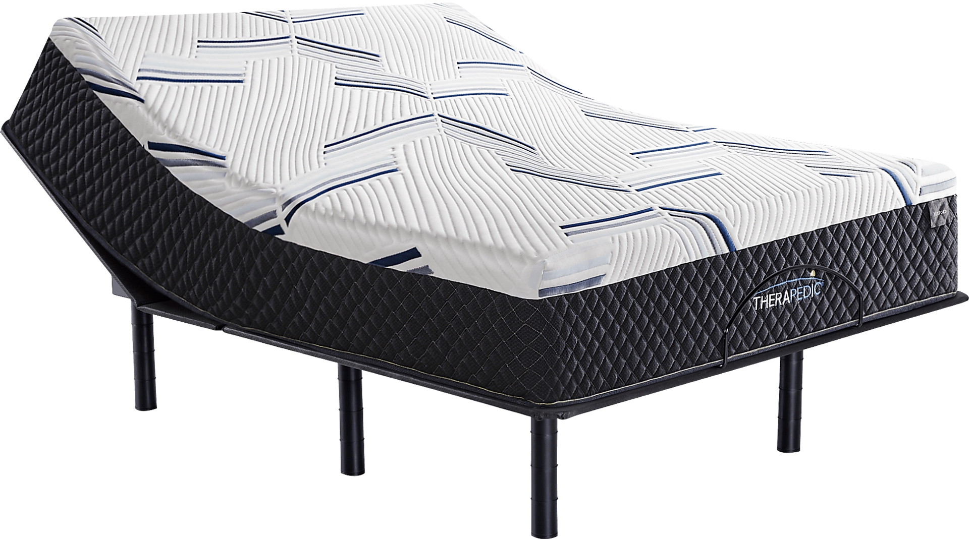 Boasting heat-regulating power, the Therapedic Milford mattress delivers extra firm support. Luxurious stretch fabric features GlacierTouch, delivering an instant cool-to-the-touch feel. Cover contains innovative Repreve Fibers utilizing recycle plastic bottles. To protect against bacteria, a Sanitized Finish prevents microbial growth for a clean, safe sleep environment. Using advanced technology, the individually wrapped CarbonFlex graphite-bonded coils are corrosive-resistant while reducing friction to improve temperature management and durability. Mitigating motion transfer, Therawrap edge to edge encased coils move independently to provide deep sleep and eliminate partner disturbance. FIT Hypergraph memory foam with copper delivers 10,000 times more thermal conductivity than standard foams, transferring heat away from your body while reducing pressure points. Conveniently raise or lower the head of your mattress using the RTG Sleep 2900 adjustable base with wireless remote control.
