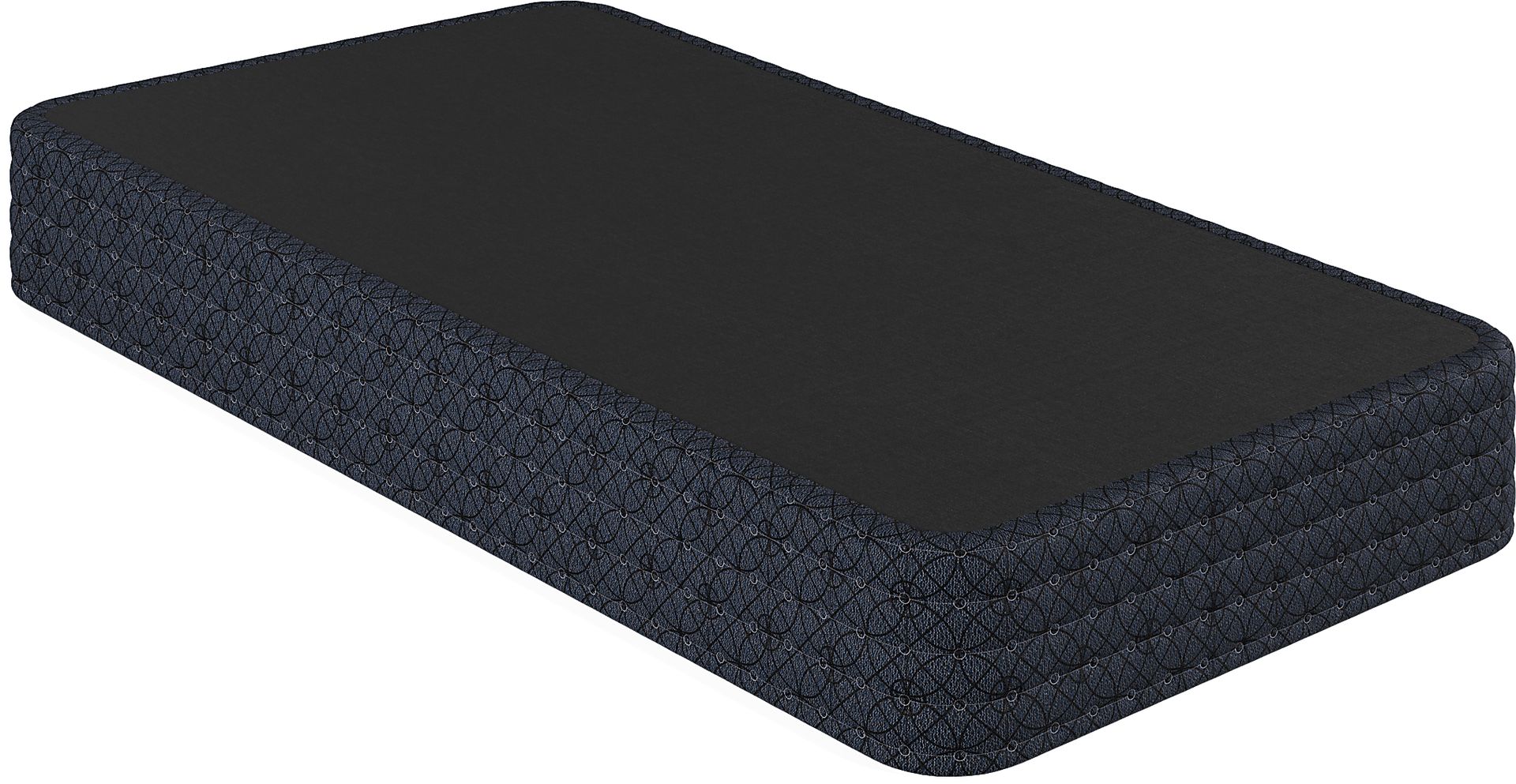 This Therapedic foundation features a modern black upholstery with a geometric pattern, specifically designed to coordinate with the clean aesthetics of Therapedic mattresses. This high-end upholstered finish provides a polished look that allows the foundation to be used without a bed skirt in contemporary kids' or guest rooms.