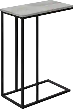 For a brilliant home upgrade, this grey wood-look C shape Thornewood side table does the trick. Supported by an elegant black metal base, the end table is made for anything from snacks and drinks to your laptop, tablet and even decorative accents that complement the rest of your decor. Bringing a modern touch to your small home, condo or apartment, this C table slides nicely under the couch or bed. Study session Favorite movie Quiet reading time This side table handles all of the above. Customer assembly is required.