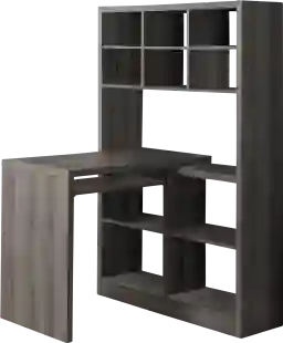 This unique contemporary style Thornhill desk and shelf unit offers the ideal combination for your home office. Finished on all sides in an elegant dark taupe look of wood, the desk features a pull-out keyboard tray and ample side storage space which can be positioned to the left or right of the desk allowing you to customize your space as needed. The convenient attached bookcase with adjustable shelving provides plenty of space to store books, paperwork, or decorative objects. A versatile design piece to place anywhere in your home and office space. Customer assembly required.