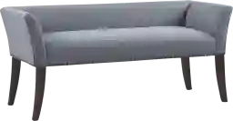 Accent your home with the simple elegance of the Threepine accent bench. Upholstered in a blue fabric, this bench features a low back and flared arms that create a sleek and sophisticated look. A bronze nail head trim adds elegant accent, while the light wood finish complements the upholstery. Perfect for your bedroom or living room, this upholstered bench provides a chic update to your home decor. Customer assembly is required.