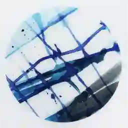 The varied blue shades in this abstract work act as a versatile anchor for many palettes. To create a serene, modern aesthetic, pair it with neutral upholstery in gray, beige, or white. For a more dynamic look in a living area, consider pulling the deeper blue tones from the art into your space through coordinated accent pillows or a textured area rug. The round, unframed design makes it especially easy to layer into contemporary or casual decor styles without clashing with existing wood finishes.