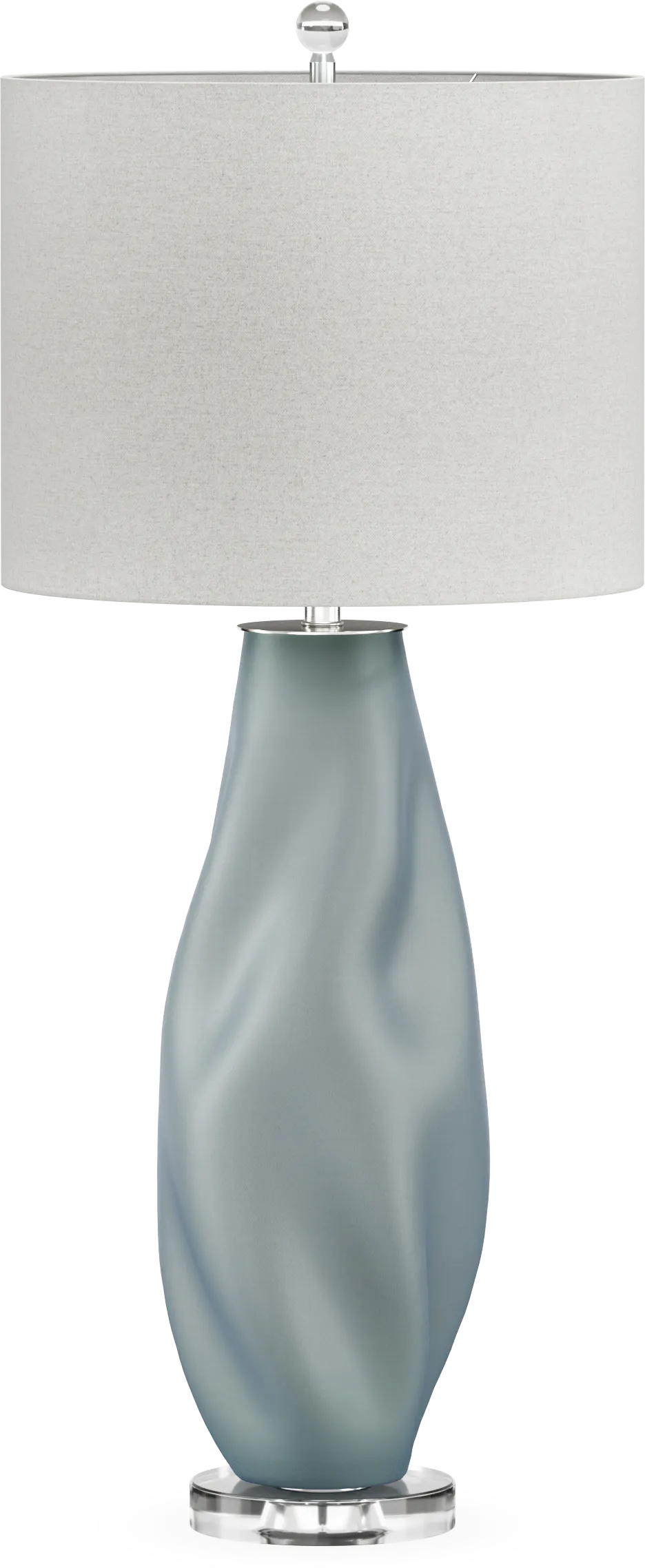 With mesmerizing details spanning the circumference of its silhouette, the Tibby Lane table lamp offers eye catching illumination from every angle. Crafted from glass and crystal, the base features a fluid wave of matte blue-gray offset by a lovely complementary linen shade. The lamp can accommodate up to a 100-watt bulb (not included).