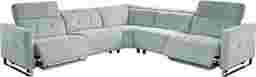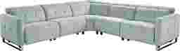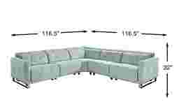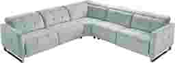 Fashioned with contemporary craftsmanship, the Tifton Park sectional blends luxury with laid back comfort. Upholstered in woven fabric, this sectional boasts an aqua blue color that complements many decorative palettes. Dual power headrests and footrests adjust to your comfort with the press of a button while built-in charging ports provide power within reach. Sleek track arms and sophisticated tufting details offer refined elegance. Modern u-shape chrome legs complete the look. 100% Polyester.