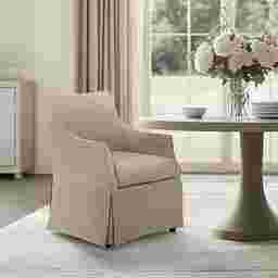 This chair is designed for mobility without sacrificing style. It features discreet casters hidden beneath a tailored skirted base, allowing for smooth, effortless movement across your flooring. This is an ideal feature for urban apartments or open-concept homes where you may need to easily transition your seating from the dining table to a conversational living room arrangement.