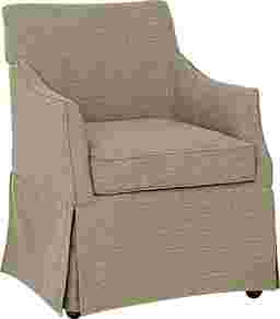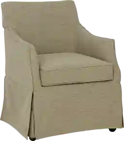 Experience the seamless blend of elegance and functionality with the Tigerfly beige armchair. This chair showcases a fully upholstered silhouette with graceful curves and refined tailoring, creating an inviting, timeless aesthetic. Beneath its elegantly skirted base, discreet casters provide smooth, effortless movement while maintaining a polished look. The padded back, seat, and arms offer exceptional comfort, while the removable seat cushion enhances versatility and convenience. Crafted with a dual-layer foam seat, this chair strikes the perfect balance of structured support and plush indulgence. Thoughtfully designed for both beauty and practicality, it arrives with all necessary tools for easy leg assembly. Customer assembly is required.