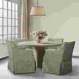 With a seat height of 20 inches and a tailored panel arm design, this armchair is built for ergonomic dining comfort. While standard dining tables are approximately 30 inches high, we recommend measuring the distance from your floor to the underside of the table apron. Its 25-inch width is carefully scaled to provide a spacious, "soft" seating experience without requiring the excessive footprint often associated with traditional armchairs.