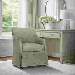 The skirted base offers a sophisticated, transitional look that hides the functional casters underneath. These casters are designed for practicality, allowing you to pull away from the table or move the chair across the room without heavy lifting. Based on our material expertise, we recommend using this chair on a low-pile rug if you have delicate hardwood floors to ensure the smoothest movement and long-term floor protection.