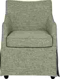 Experience the seamless blend of elegance and functionality with the Tigerfly green armchair. This chair showcases a fully upholstered silhouette with graceful curves and refined tailoring, creating an inviting, timeless aesthetic. Beneath its elegantly skirted base, discreet casters provide smooth, effortless movement while maintaining a polished look. The padded back, seat, and arms offer exceptional comfort, while the removable seat cushion enhances versatility and convenience. Crafted with a dual-layer foam seat, this chair strikes the perfect balance of structured support and plush indulgence. Thoughtfully designed for both beauty and practicality, it arrives with all necessary tools for easy leg assembly. Customer assembly is required.