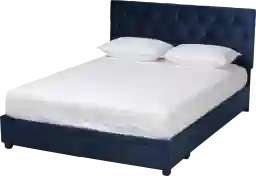 Transform your bedroom into a glamorous sanctuary with the Tigertube navy queen storage bed. This chic bed is upholstered in a lavish velvet fabric that provides ample comfort for you to lean against as you read or watch TV. Button tufting on the headboard adds an extra dose of elegance and accentuates the stunning sheen in the velvet. Black feet complete the look. Stylish and practical, the Tigertube is fitted with two drawers at the footboard with space to store clothes, sheets, and more. Customer assembly is required.