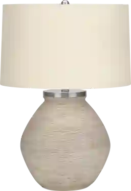 If you are looking for a stylish and fashionable lighting solution for your space, then look no further than the Times Road Cream Lamp It features a jar shaped, cream concrete base with a texture of fine lined ridges and an elegant beige linen drum shade, finished with a round silver finial on top. Place this versatile, contemporary accent lamp on any end or side table, nightstand or bedside table to create a warm and inviting ambiance. Partial assembly may be required.