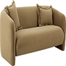 The Tinamous sofa is upholstered in a soft, textured velvet fabric, which offers both comfort and a stylish appearance. While velvet is generally durable, regular care is recommended to maintain its pristine look. For cleaning, gently blot spills with a mild soap and water solution using a soft rag. Tightly woven fabrics, like this textured velvet, are known for their resilience against everyday wear.