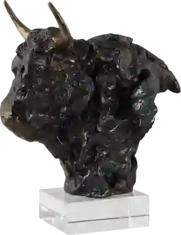 Introducing our exquisite Tiop bison bust, a majestic symbol of strength and elegance. Crafted in tarnished bronze with gleaming gold antlers, this stunning piece exudes timeless sophistication. Poised atop a shimmering crystal base, it commands attention and adds a touch of luxury to any space. Customer assembly is required.