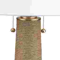 This lamp establishes an authentic "seaside spirit" through its use of organic textures and refined finishes. The pillar base is wrapped in natural light brown rope, a material synonymous with nautical and coastal aesthetics. To elevate the look from casual to "coastal chic," the design includes a metal foot in a brass finish, adding a touch of refined shine that complements the natural fiber and white fabric shade.