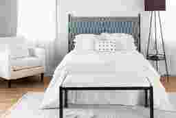 Add contemporary style to your bedroom with the Tockington braided queen headboard. The braided headboard features plush padding, stylish braided fabric upholstery, and a sleek black metal frame. Customer assembly is required.