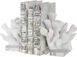 The Toliver set of two bookends features textured faux white coral on crystal bases. Sizes S-5x9x8, L-6x9x8