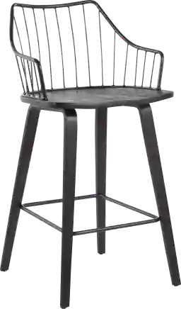 This stool features a robust hybrid construction designed for longevity. It combines a sturdy wood seat and legs with a metal spindle backrest, offering a high-strength frame that can withstand the rigors of a high-traffic kitchen. The use of metal for the spindle back provides exceptional structural integrity and resistance to wear compared to all-wood alternatives.