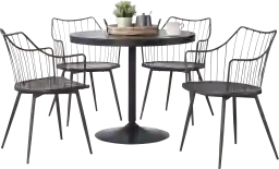 With a simple and sleek table, and an accent of comfortable chairs, the Tollefs Walnut 5 Pc Dining Set will be a great addition to a modern kitchen or break room. With a contemporary styling, this is a beautifully curated set to make life stylish and easy. With a seating capacity of four, this dining set would be perfect in any dining room, kitchen, or breakroom. Customer assembly required.