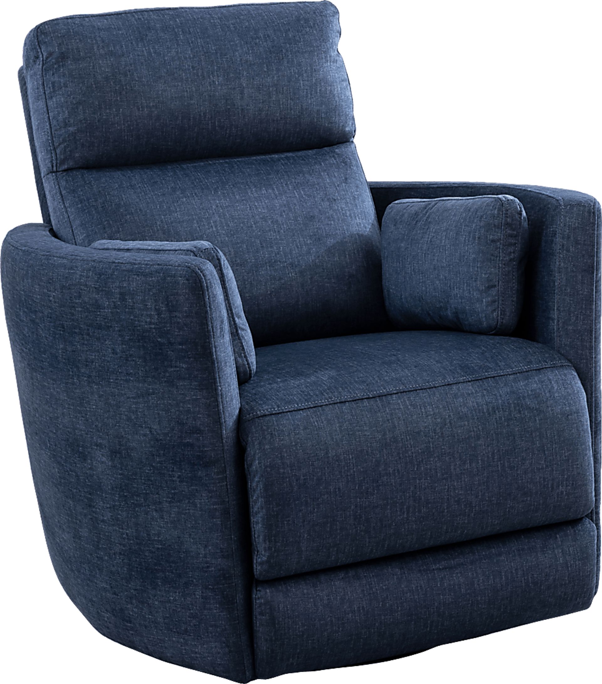 Enveloping you with a sense of serenity and calm, the Tomlin swivel recliner delivers understated style and an overabundance of comfort. With its traditional style adding the warmth of nostalgia and consistency, it's easy to find your perfect relaxation position by leaning into the soft, blue stuffed back cushion and reaching your desired angle of reclining nirvana. Take advantage of the gliding function to gently move back and forth, melting away any remaining tension. Padded arms and a single attached seat cushion add durability and a look of stately solidity, while the swivel base provides both a panoramic view of the room. Upholstery: 100% Polyester.
