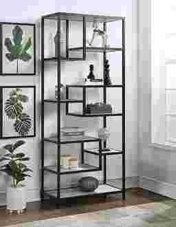 Exhibiting an open design, the Torbay divider offers contemporary style with an industrial touch. Its black iron frame forms clean, sharp lines. Crafted of acacia solids, the shelves feature a contrasting white finish. An intricate labyrinth of shelves supplies space for a plethora of books, picture frames and decor.