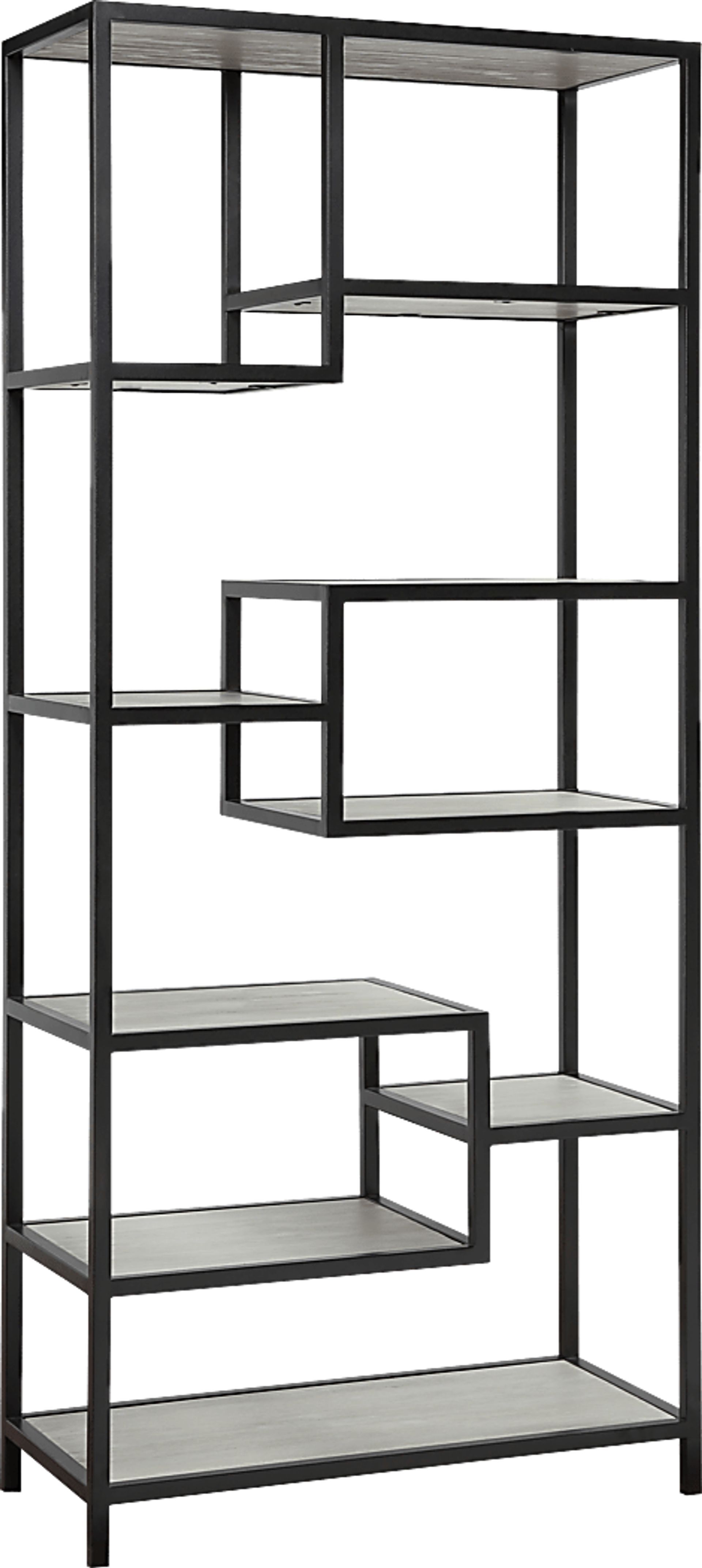 I absolutely love this shelf and bought 2 for my wall side by side. The metal frame in the showroom is clearly a grey metal and it was perfect for my color scheme in my home. My Sales Associate who was fantastic made sure with his manager that it was a Grey Metal because the photo when ordering on his website showed almost a blackish color, he was reassured that it was gray. Unfortunately the two I received was a dark bronze brown. Extremely disappointing considering I paid over 1600.00 for these shelves. I didn’t return them do to my past experience with Rooms To Go returning an Item, a Total Hassle so I will learn to deal with the color.