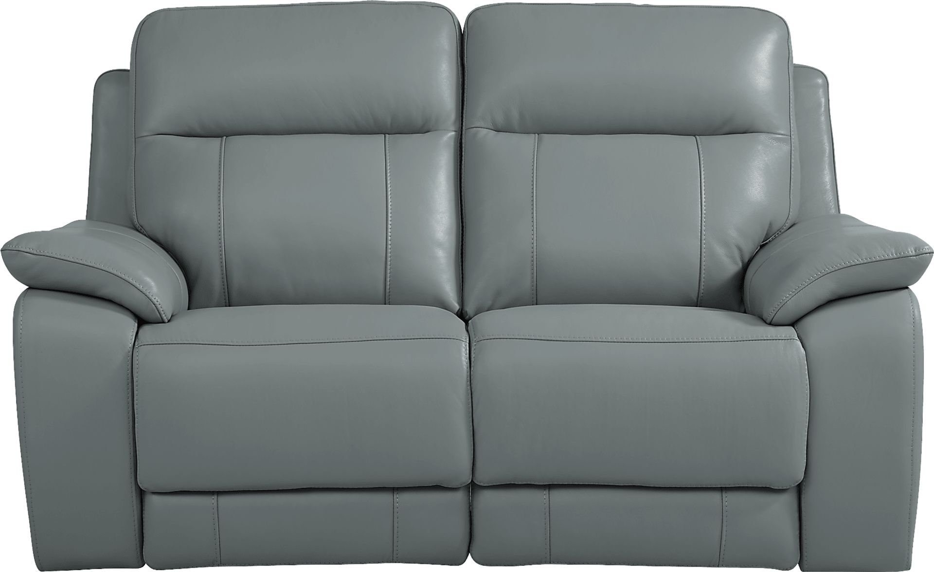 Providing luxury and comfort, the Torini reclining loveseat is a modern seat for two. Upholstered in top grain leather where the body touches, this piece is rendered in a stylish light blue color. Its convenient feature allows you to recline the chaise-style footrests so you can kick back and relax. Soft, sumptuous pillowtop arms make it easy to get comfortable. Top grain leather where the body touches and polyurethane fabric sides and backs.