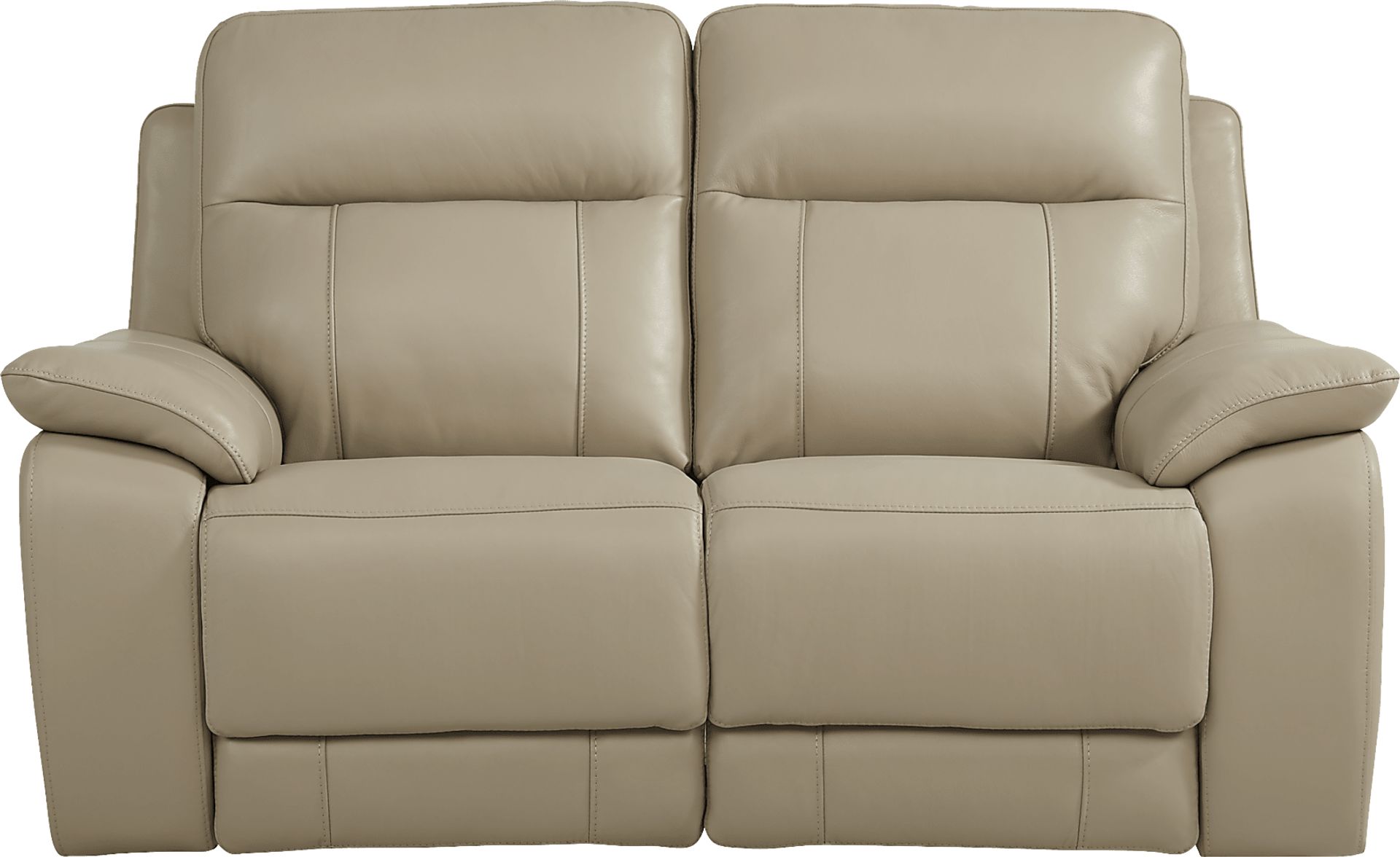 Providing luxury and comfort, the Torini reclining loveseat is a modern seat for two. Upholstered in top grain leather where the body touches, this piece is rendered in a versatile cream color. Its convenient feature allows you to recline the chaise-style footrests so you can kick back and relax. Soft, sumptuous pillowtop arms make it easy to get comfortable. Top grain leather where the body touches and polyurethane fabric sides and backs.