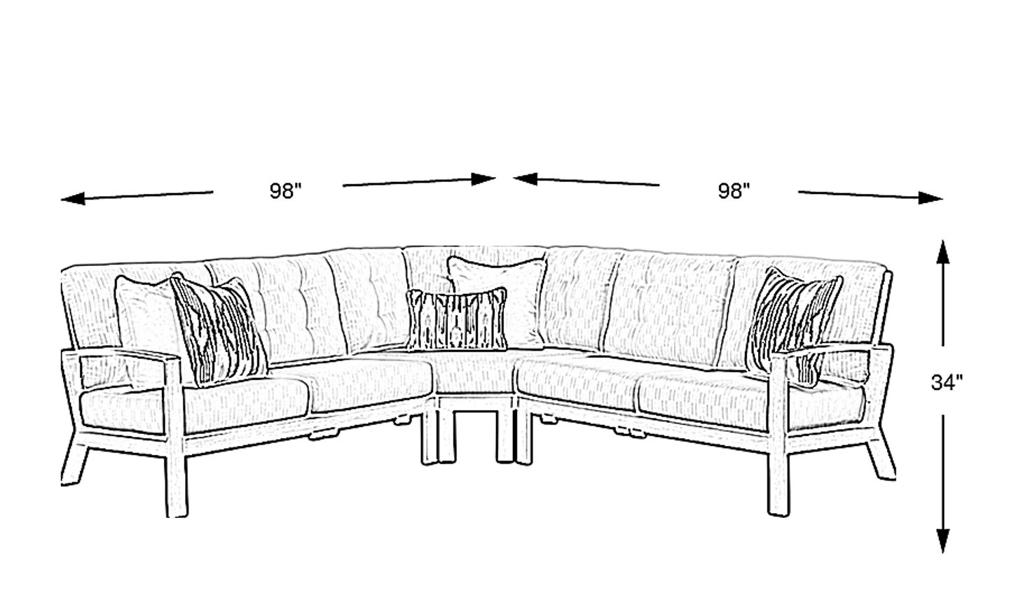 Outdoor relaxation is elevated in stunning style with the Torio sectional's contemporary look and classic feel. Stretch warm afternoon conversations well into the evening on durable, UV-resistant seat cushions in a calming oatmeal color. The brown, powder-coated aluminum frame of this 5-seat piece features gently curved arms and pronounced slat-back details. Coordinating accent pillows are included. Select cushion colors also available in Sunbrella fabric.