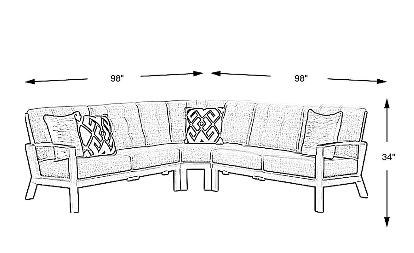 Outdoor relaxation is elevated in stunning style with the Torio sectional's contemporary look and classic feel. Stretch warm afternoon conversations well into the evening on durable, UV-resistant, 100% Sunbrella fabric seat cushions in a calming silk color. The brown, powder-coated aluminum frame of this 5-seat piece features gently curved arms and pronounced slat-back details. Coordinating accent pillows are included. To clean Sunbrella fabric cushions, remove dirt and spray on cleaning solution (water and mild soap) and then use a soft bristle brush or sponge. Allow cleaning solution to soak into fabric and rinse thoroughly until soap residue is removed. Air dry. Do not dry clean.
