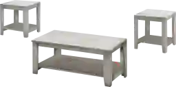 Whether you need the perfect living room table set to match your current decor style or if you're starting fresh, the Torlage gray 3pc table set is perfect for you. In a beautiful trendy wood-look finish, these living room tables offer top and bottom shelves for ample storage space so that you can sport any decorations or electronics. Made of a sturdy, thick panel construction, these tables can be placed just about anywhere in your living room, family room or basement. They are also perfect for small homes, condos or apartments. Customer assembly is required.