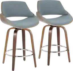 These stools are delivered in a set of two and require customer assembly. The process involves securing the contoured, scooped seat to the swivel mechanism and the four-leg base. We recommend following the included instructions closely to ensure the swivel remains smooth and the walnut-finished legs are properly balanced for maximum stability.