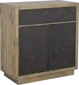 Keep your living room, home office, or entryway organized without sacrificing style. This sturdy two door and one drawer Trossachs accent cabinet is designed to give you a flexible storage option where you need it, whether it's for magazines or books, office supplies, or knick-knacks that don't have a space of their own. The drawer and door fronts feature a raised geometric diamond pattern that has been painted in a distressed black finish and is complimented by the contrasting aged natural finish of the frame. The adjustable interior shelf, European hinges, and extended drawer glides are just a few of the other features that you will appreciate with this piece. Customer assembly is required.