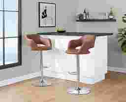 Inspired by contemporary design, the Toune Brown Adjustable Swivel Barstool, Set of 2 features a cut-out backrest ergonomically designed to fit your body, swivel seat, armrests for additional comfort, and a built-in footrest for added comfort. This barstool is upholstered with luxurious faux leather. Available in a variety of color options, choose the color that suits your space best Customer assembly required.