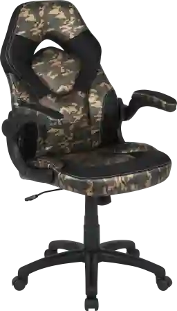If you are a serious gamer, you need an ergonomic office chair to keep up with the demands of your marathon gaming sessions. Your couch may feel comfortable, but you need adequate seating while holding the controller for hours at a time. This high back racing style game chair will outperform your couch with healthier benefits. The ergonomic design of the Tournne camouflage racing chair offers generous padding with a wing style back to cradle your torso. The padded arms provide a comfortable resting position while holding your controller and relieve pressure off your shoulder and neck. If you're playing on your computer and want to get closer to the action the arms flip backward to pull yourself underneath the desk without having to adjust the seat height. The tilt lock mechanism underneath the seat locks in an upright position when you no longer want to lean and rock back. To be considered a true gamer you need a dedicated gaming chair to take your gaming to new heights, whether you have followers who watch you on a streaming service or like to interact with other gamers online. Customer assembly is required.