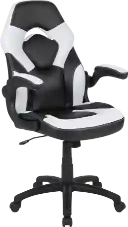If you are a serious gamer, you need an ergonomic office chair to keep up with the demands of your marathon gaming sessions. Your couch may feel comfortable, but you need adequate seating while holding the controller for hours at a time. This high back racing style game chair will outperform your couch with healthier benefits. The ergonomic design of the Tournne black and white racing chair offers generous padding with a wing style back to cradle your torso. The padded arms provide a comfortable resting position while holding your controller and relieve pressure off your shoulder and neck. If you're playing on your computer and want to get closer to the action the arms flip backward to pull yourself underneath the desk without having to adjust the seat height. The tilt lock mechanism underneath the seat locks in an upright position when you no longer want to lean and rock back. To be considered a true gamer you need a dedicated gaming chair to take your gaming to new heights, whether you have followers who watch you on a streaming service or like to interact with other gamers online. Customer assembly is required.