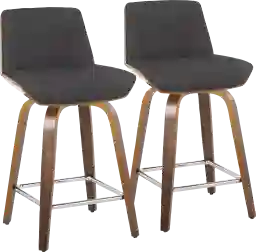 This set of two requires customer assembly and is designed for a straightforward, efficient setup. All necessary hardware is included. To ensure long-term stability, we recommend following the instructions carefully to secure the swivel plate to the stainless steel frame. Based on our assembly standards, building the stools on a soft surface, such as a rug, will help protect the charcoal fabric and metal finish from any accidental scuffs during the process.
