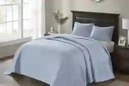 A quilted bedspread is a practical and durable option for pet owners. The classic stitch pattern not only adds rich depth but also helps secure the filling against shifting. This set features a resilient cotton-polyester blend and prewashed cotton filling for added durability. Furthermore, the integrated antimicrobial treatment provides built-in freshness protection, reducing the growth of odor-causing bacteria that can be common in homes with pets.
