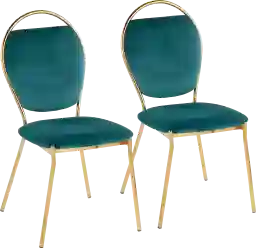 Update your contemporary glam style dining room with the sleek design of the Trafalger dining chair. These dining chairs feature a keyhole design with a unique curved metal frame and tapered legs. The gold metal frame of these chairs stands out against the stylish velvet upholstery. Customer assembly is required.