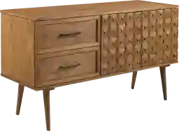This charismatic Traherne sideboard will easily find the perfect spot in your heart and your home with its unique 3D prism wood detailing and boho-inspired eclecticism. Push-close doors offer an aesthetic approach to easy modern storage and an adjustable shelf and two drawers make storing your favorite dishes or living room essentials a breeze. Tapered legs and powder-coated steel handles mingle a tastefully cohesive Mid-century modern and contemporary display whether its in your entryway home office or dining room. Its responsibly-sourced solid pine wood build means you can entertain guests in sustainable style. Customer assembly is required.