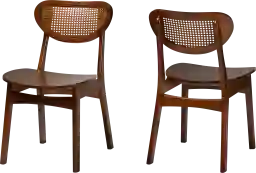 Bring classic rustic charm to every meal with the lovely Traminer walnut brown dining chair, set of 2. This mid-century inspired piece consists of a sturdy wood frame embellished with a woven rattan backrest. Its crescent backrest and bent seat lend a smooth geometric display while offering a cozy embrace. The Traminer features angled legs for excellent stability and support in classic design. Blending well with a variety of room styles, the Traminer finds its place in any setting. Customer assembly is required.