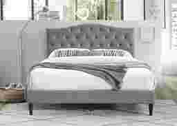 You have found beauty for your bedroom and more comfortable sleep with our Treebrooke upholstered queen size bed. This queen size button tufted platform bed properly supports your mattress without a box spring or foundation. The beautiful headboard, features classic button tufting, makes this upholstered platform bed a perfect style statement for your bedroom. The elegant and comfortable transitional style will also make your bedroom fresh and appealing. Customer assembly is required.