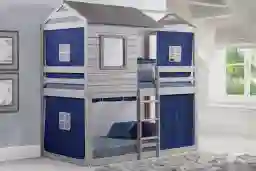 Treeline Cabin Gray Twin/twin Jr. Loft Bed With Blue Tent