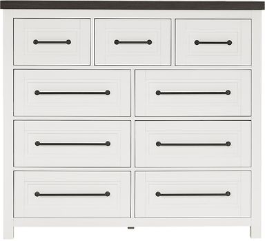 This bureau expertly blends "Cottage-inspired" farmhouse charm with contemporary clean lines. The high-contrast aesthetic—featuring a crisp white finish paired with a dark brown top and dark brown bar pull hardware—allows it to serve as a bridge between styles. It provides the warmth of a farmhouse look while maintaining the sophisticated, clutter-free silhouette required for modern interior design.