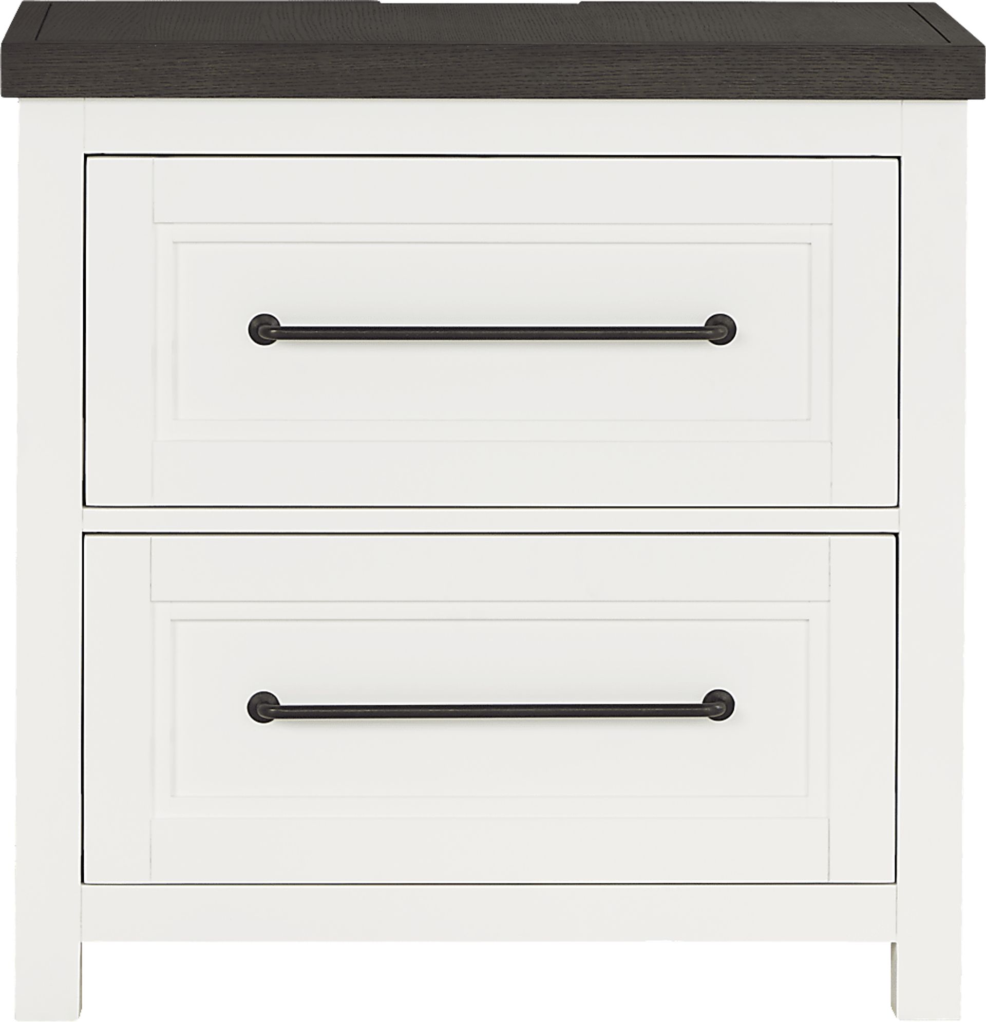 Clean lines and a cottage-inspired design in the Tremblay Square nightstand brings classic sophistication to a refreshingly serene aesthetic. Contemporary in style, this piece features a dark brown top and pulls that create an elegant contrast and unique framed look. The two drawers are constructed with English dovetail joints and side mounted full extension ball-bearing glides for support and longevity. Felt-lined top drawers and dustproof bottom drawers ensure the quality of your belongings while complimenting the elegant look.
