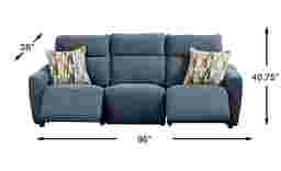 When the home feels most alive in its most relaxed moments, a refined comfort settles in with the Tremont collection, inviting all to lounge in style without sacrificing function. Contemporary in design, this sofa is upholstered in indigo blue woven chenille and finished with welted seams for a clean, tailored look. Soft radius arms and supportive back cushioning invite you to sink in, while power reclining lets you adjust the footrest with ease using activator switches that include both USB-A and USB-C charging ports. To complete the ensemble, coordinating jacquard accent pillows add texture, depth and color. Upholstery: 100% polyester.